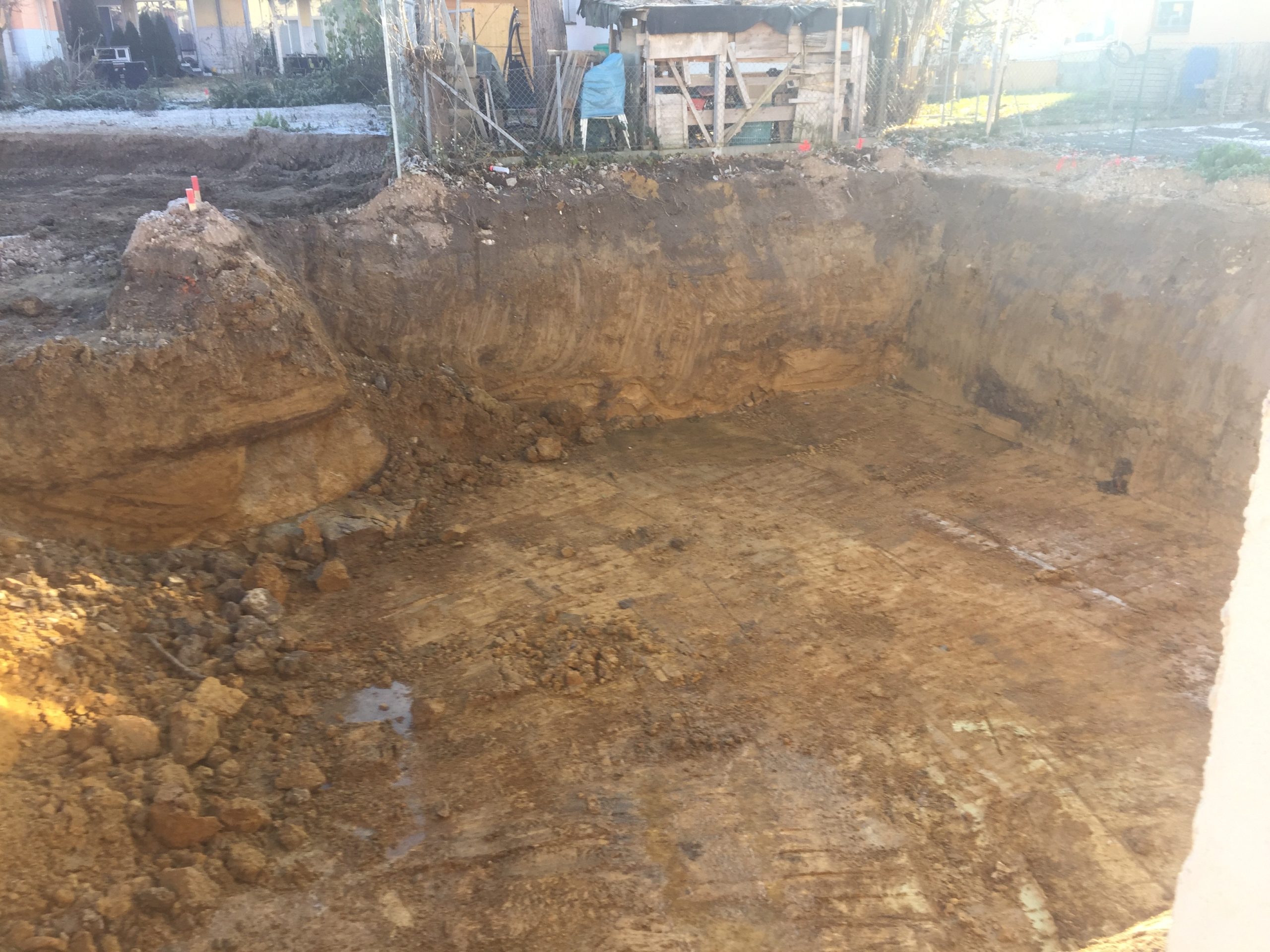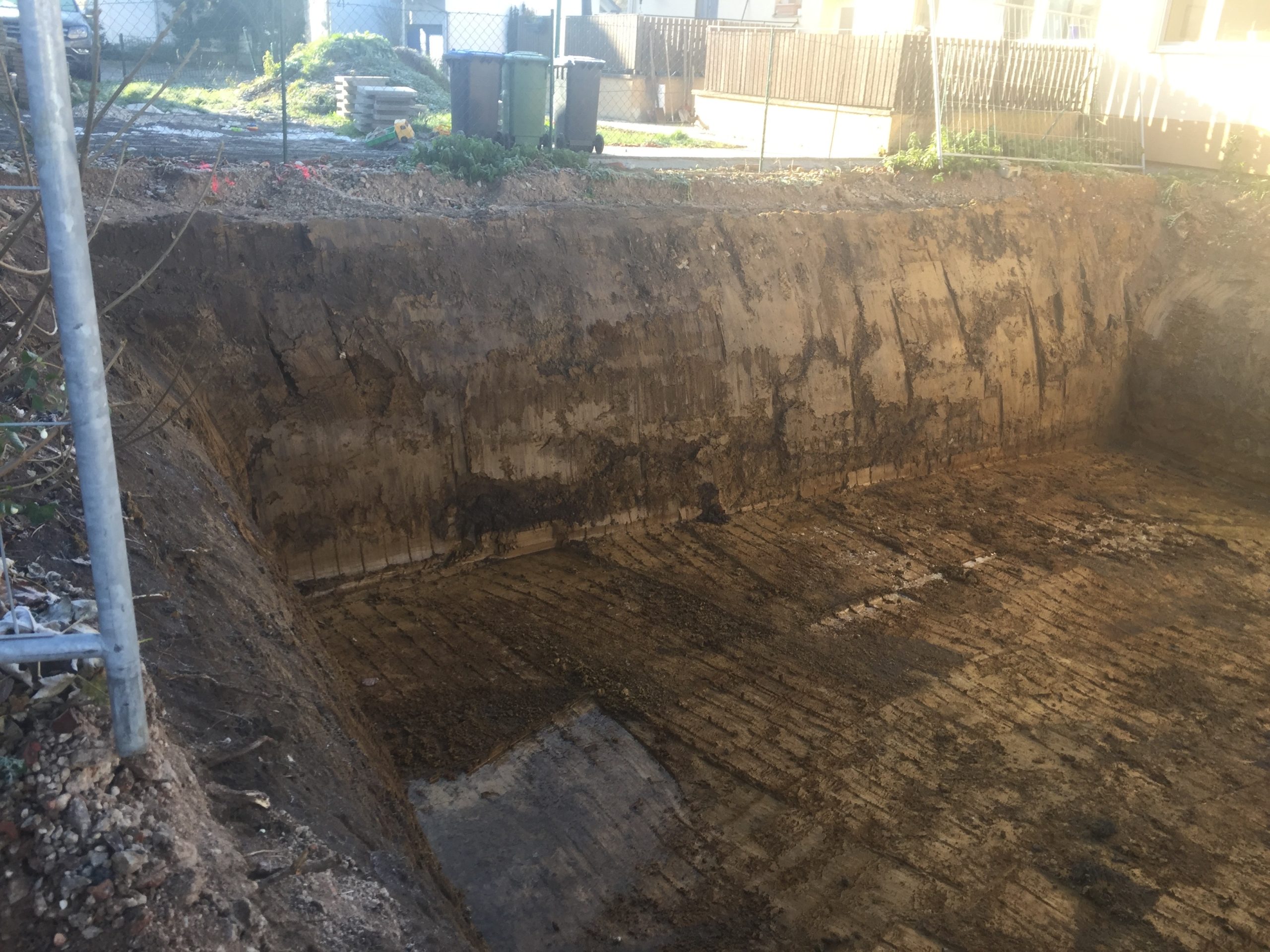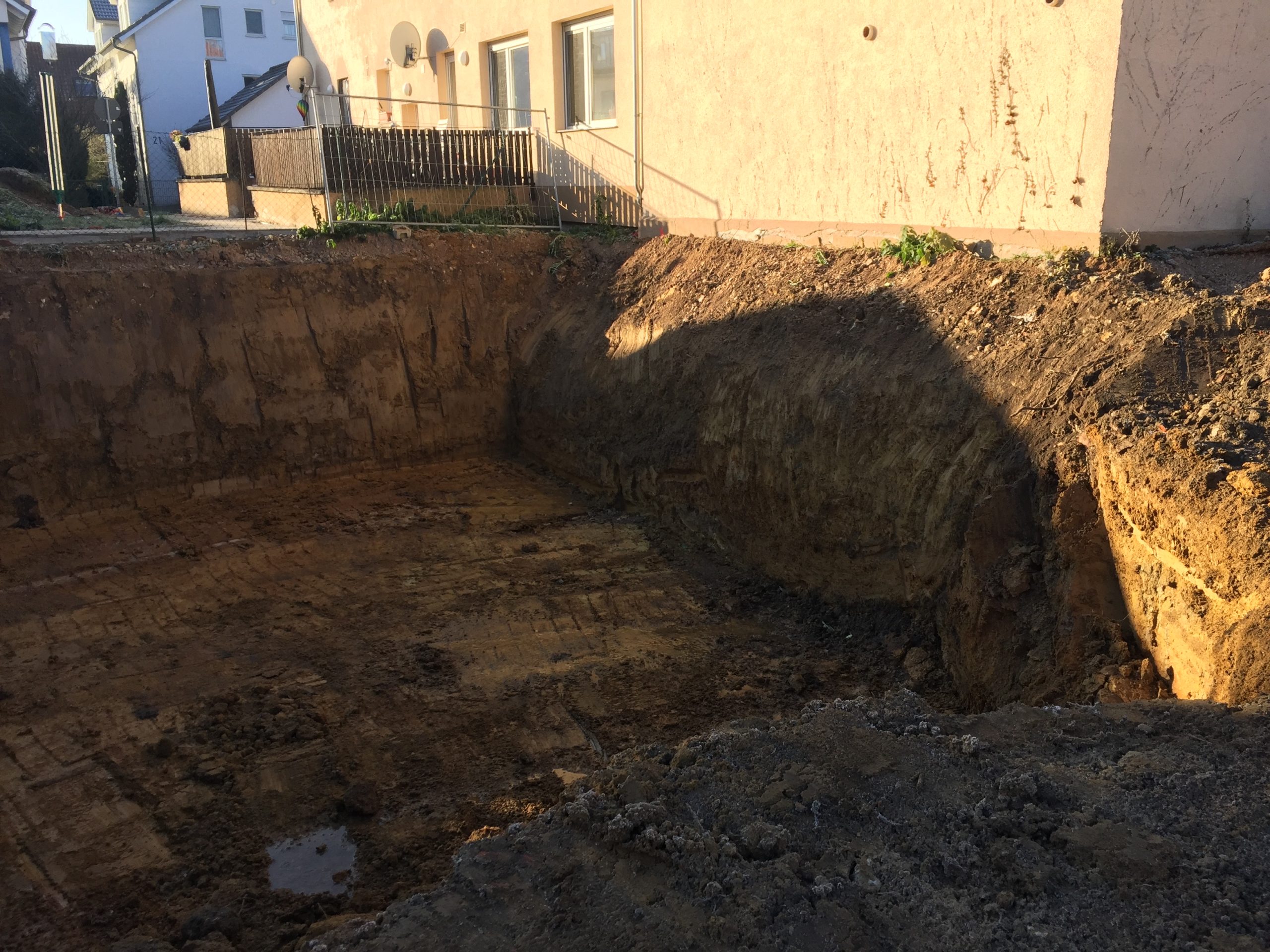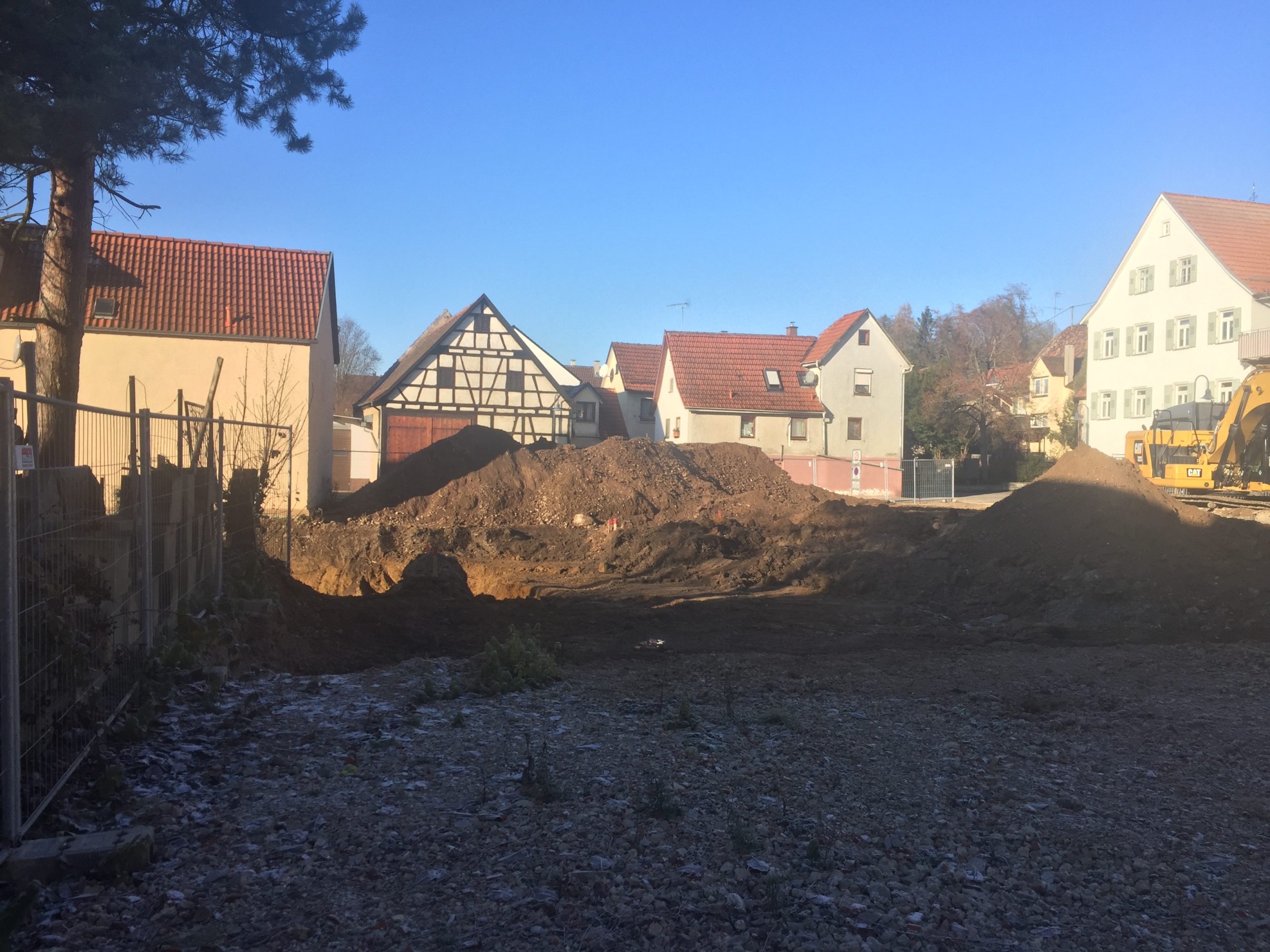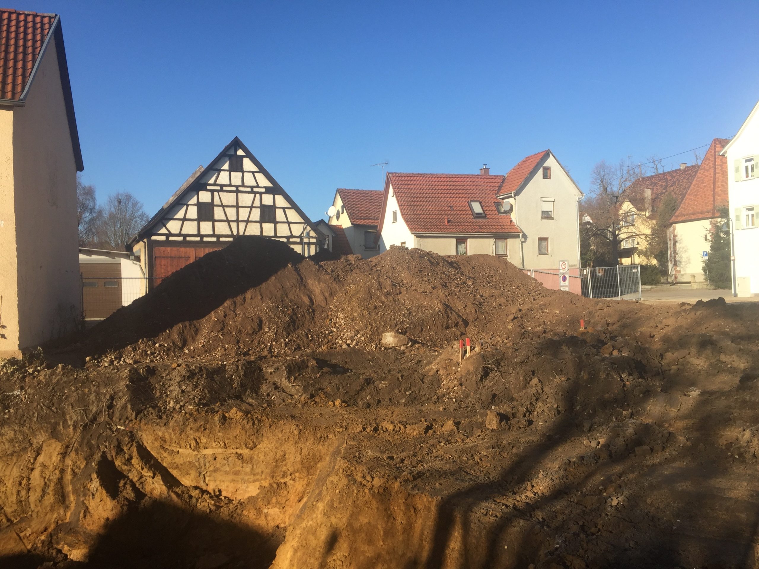 - Bagger hebt Baugrube bei Enzenhausen aus